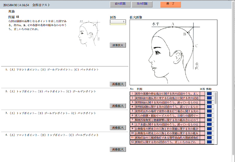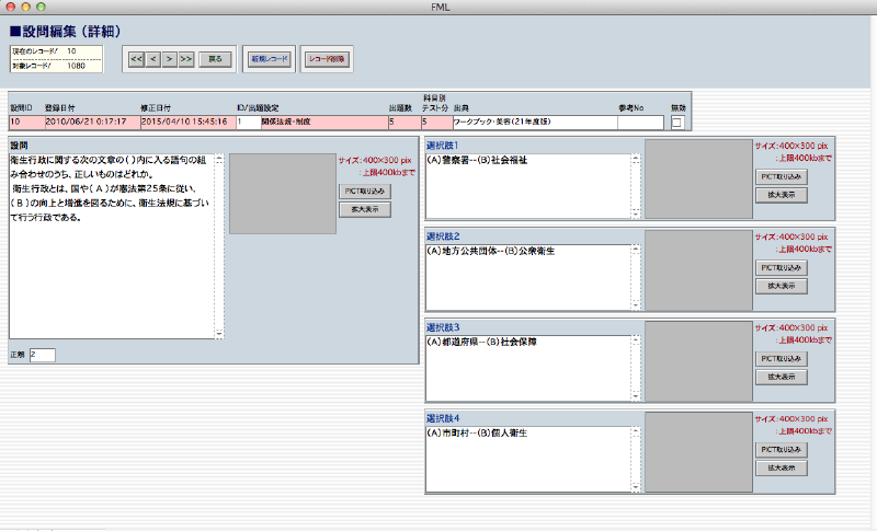 専門学校にて国家試験の過去問題集(四択)を規定の分類事の出題数でランダムに出題したテストを作成します。