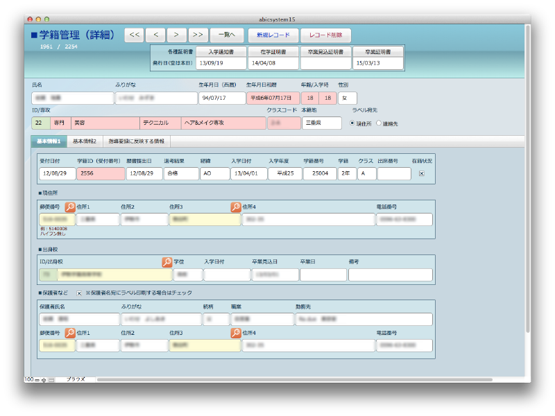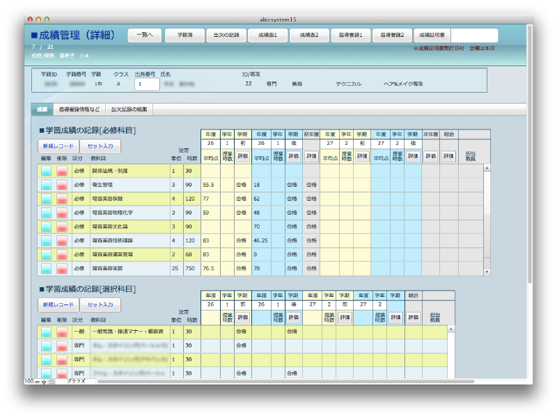 専門学校の生徒の基本情報、出欠、試験結果、健康診断、他全ての情報を一元管理します。