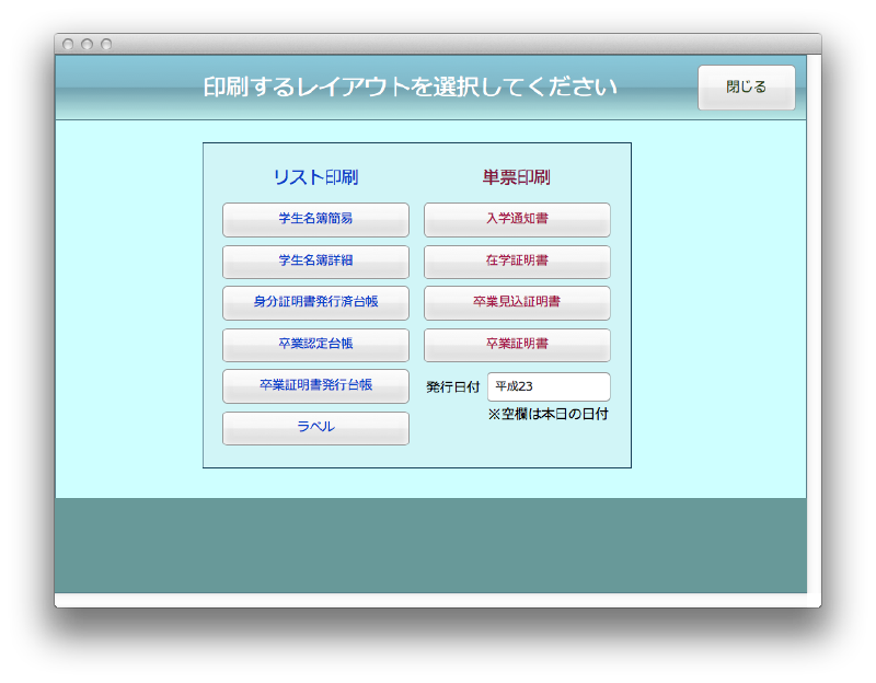 成績表ほか父兄に提出する書類から各機関に送る証明書や証書なども一括で発行できます。