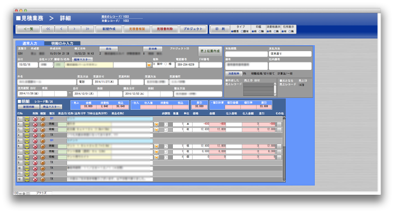案件が発生するとプロジェクトとし、それに紐づき見積、売上、請求、入金までを一貫して管理します。